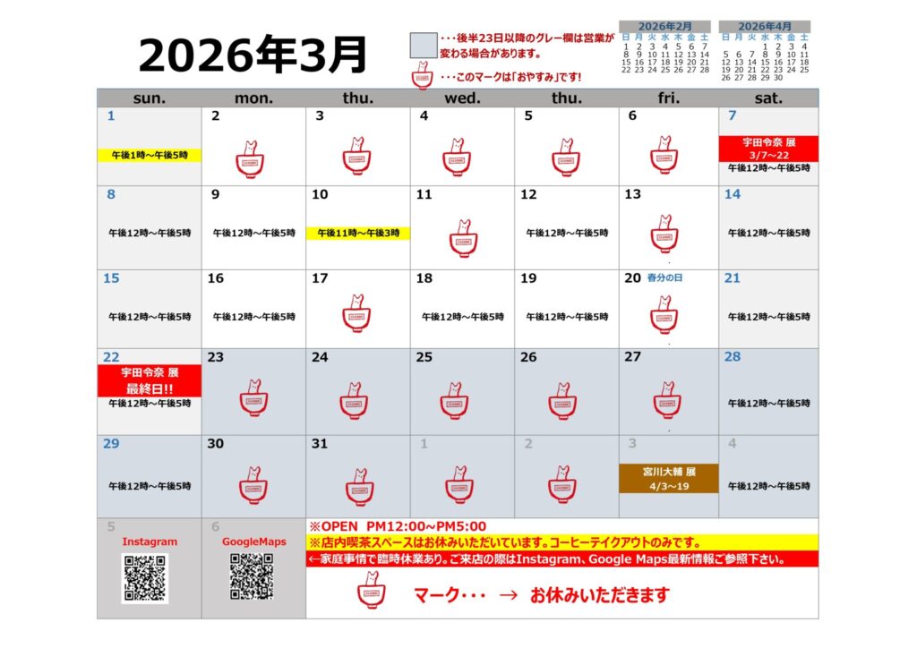『3月営業カレンダー』🗓️